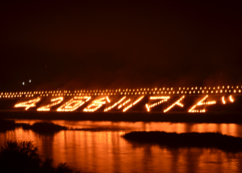 合川地区の夏祭り「合川ふるさとまつり」。無数の灯籠と炎が阿仁川に映る幻想的な「まと火」がメインイベント。郷土芸能も楽しめます。