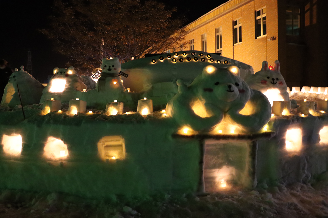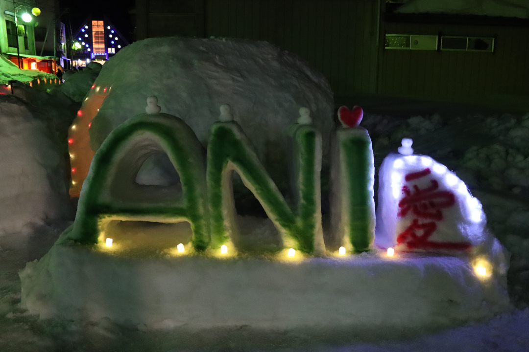 無数のキャンドルと雪像、花火が冬の夜空を幻想的に彩り、地域を盛り上げます。