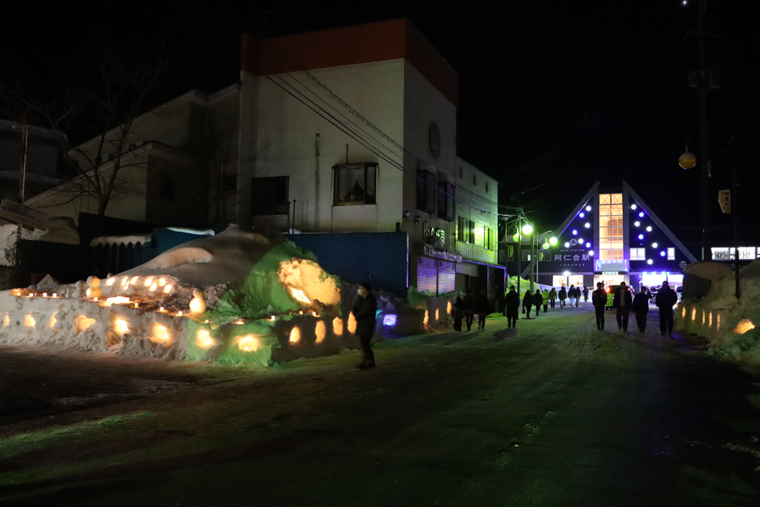 阿仁合駅周辺で開催される「スノーキャンドルストリートinあに」。