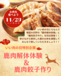 カメラ好きの皆さん!あなたの「好き」を「スキル」に変えるチャンスです! この度、北秋田まちづくり観光協会では【学びと遊び大学~フォトコンテンツ学科~】を開講しました。学び〜観光イベント企画までを… 続きを読む: 【学びと遊び大学~フォトコンテンツ学科~】 参加者募集! - 鹿肉解体体験&鹿肉餃子作り体験!参加者募集します