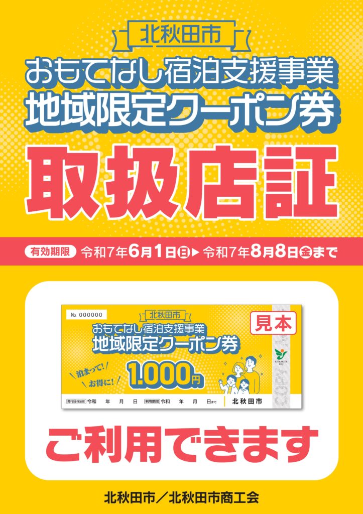 令和7年度 北秋田市おもてなし宿泊支援事業♨