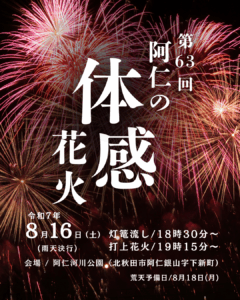 体感する!阿仁の花火と灯篭流し山間に響き渡る花火の音が毎年多くの観客を魅了する「阿仁の花火と灯篭流し」が今年も開催されます。 この機会にぜひお越しください。 【日時】2025年8月16日(土) 午後7時15分~午後8時4 […]