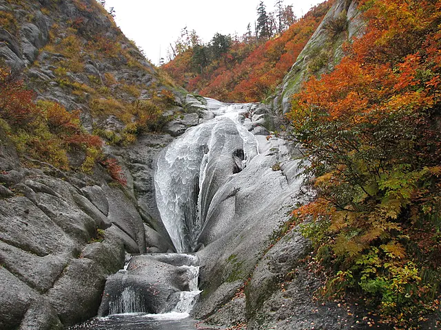 おう穴や滝が点在し、森吉山野生鳥獣センターから桃洞滝まで4.2kmの登山道が整備されています。