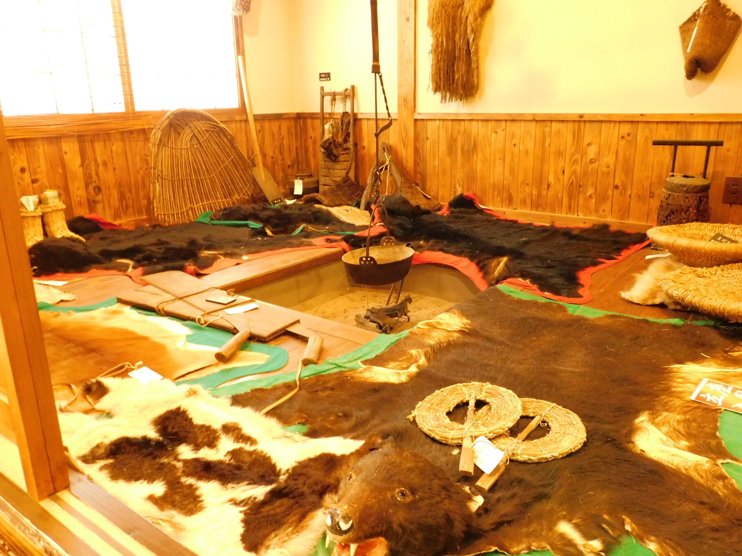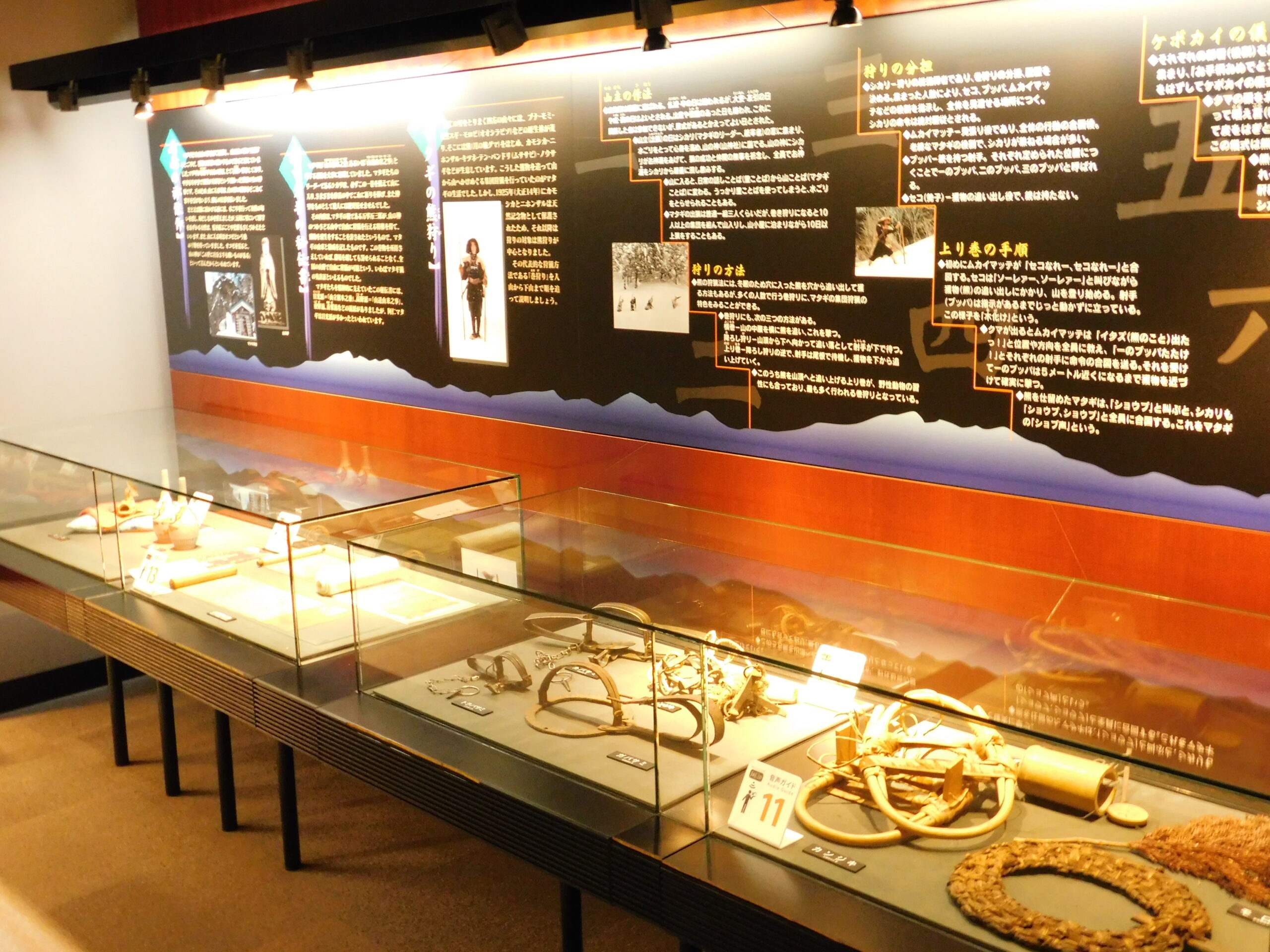 独自の掟や信仰を持ち、クマなどを狩るために用いた猟銃や道具、衣装などを展示しています。