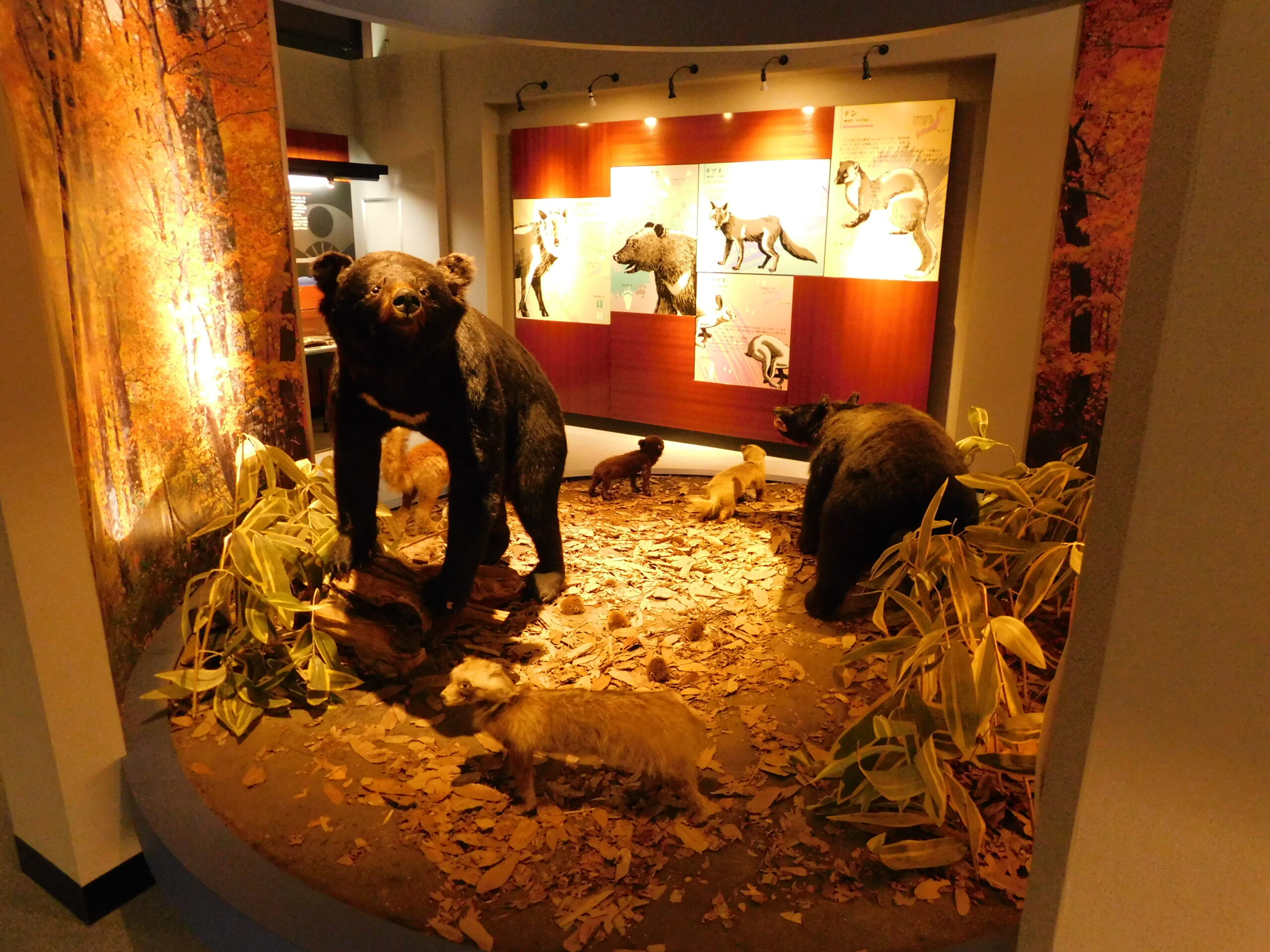 ジオラマや映像で、生活様式や狩りの様子を分かりやすく伝えています。