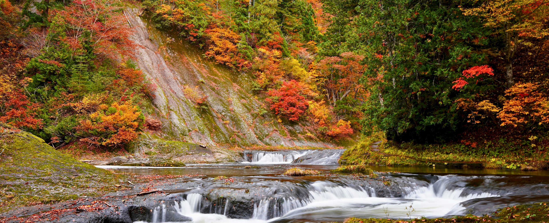 「秋田県最後の秘境」とも呼ばれ、大小100以上の滝や深淵が織りなす原生的な渓谷です。