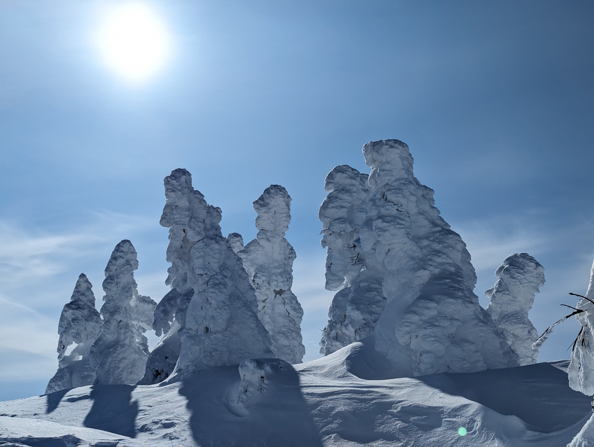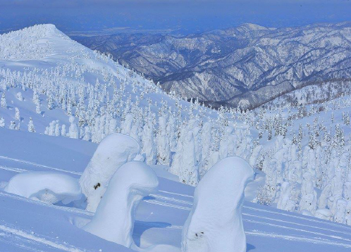 日本三大樹氷の1つである森吉山の樹氷。それは国内はもちろん、世界的にも希少なものです。ゴンドラ山頂駅から歩くこと5分、目の前に巨大な樹氷群が現れます。